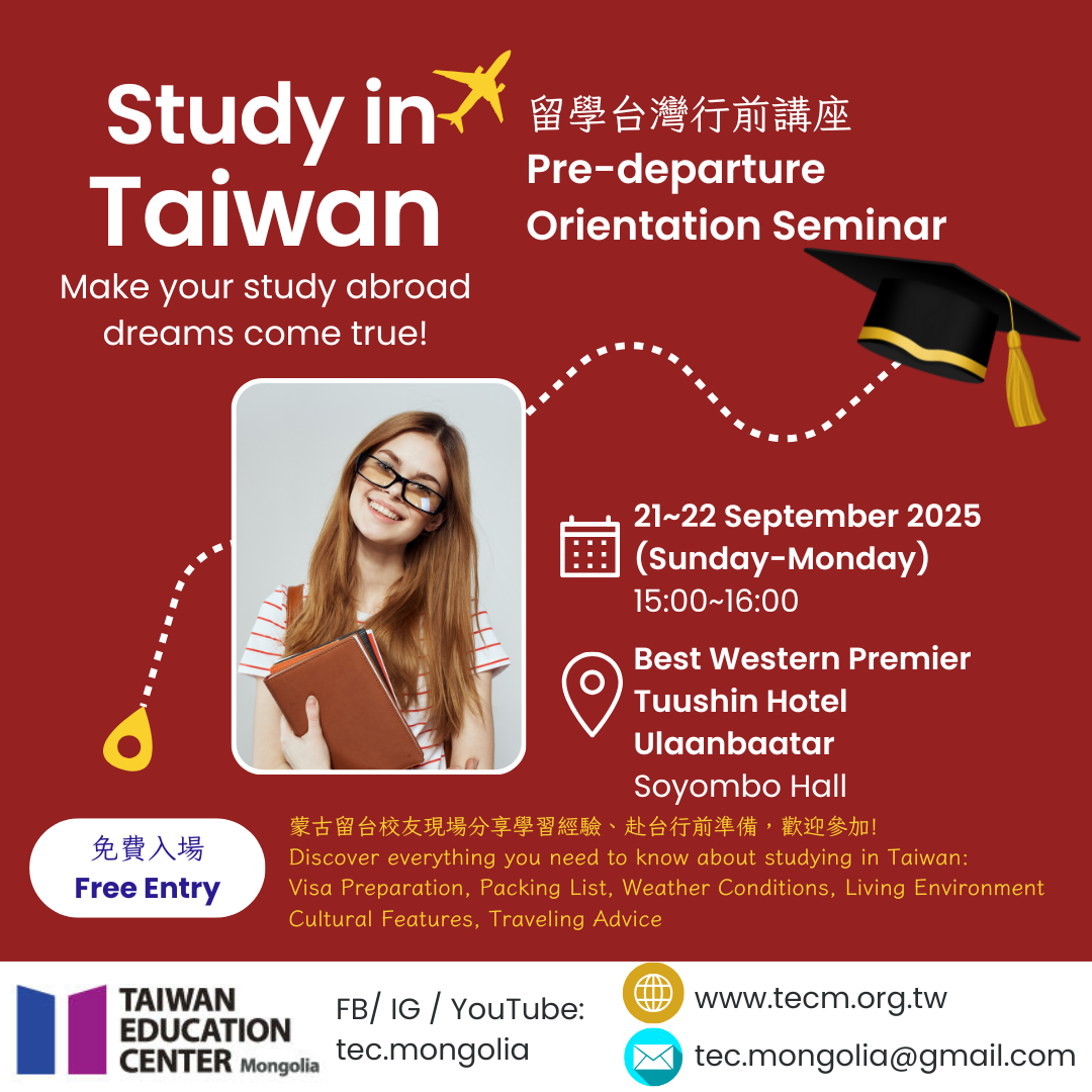 【轉知】蒙古臺灣教育中心舉辦蒙古新生留台行前講座